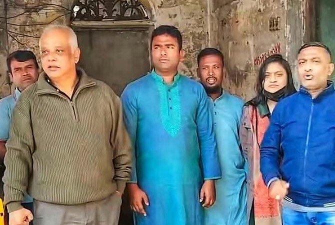 দিনাজপুরে ভাঙচোরা আওয়ামী লীগ কার্যালয়ে স্লোগান, পরে অগ্নিসংযোগ